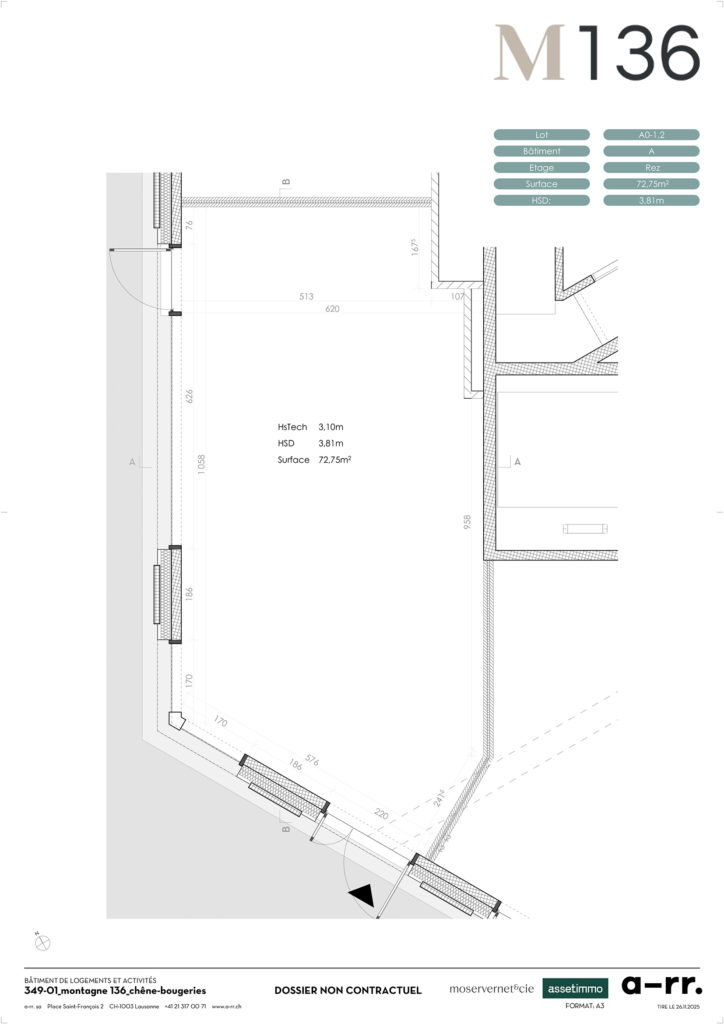 A0-1.2 A Rez-de-chaussée Arcade 72.80 m2  2’940.-   425.- A LOUER Télécharger plan